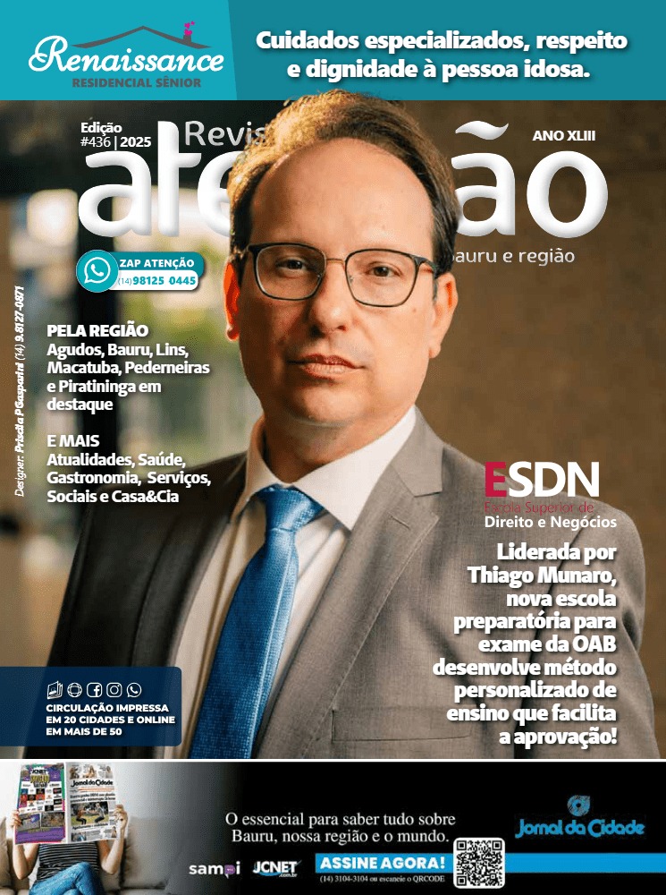 Com um impressionante índice de 80% de aprovação no Exame da OAB entre os alunos que passaram pelo nosso curso preparatório, a ESDN vem conquistando reconhecimento dentro e fora do meio jurídico. Nosso fundador foi capa da revista Atenção em março de 2025, evidenciando o impacto da nossa metodologia na formação de novos advogados. Além disso, ele concedeu entrevista ao programa Negócios & Cia, da Rádio 96 FM, compartilhando os bastidores desse resultado expressivo e a visão da ESDN para a educação jurídica no Brasil.